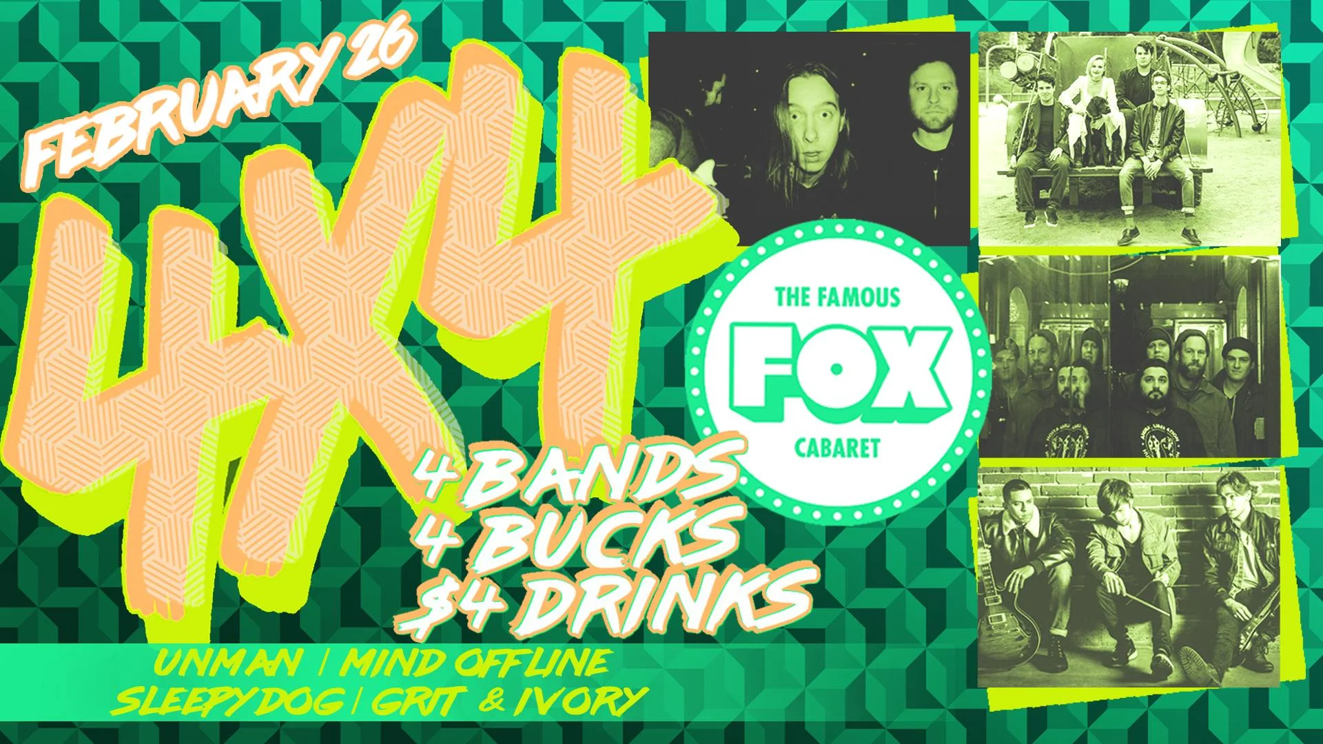 We make it easy to support great live music with a monthly showcase featuring four emerging bands for just $4 (that $1 per band!). Plus, with $4 drink specials going all night long, there is just no reason to not join the party.