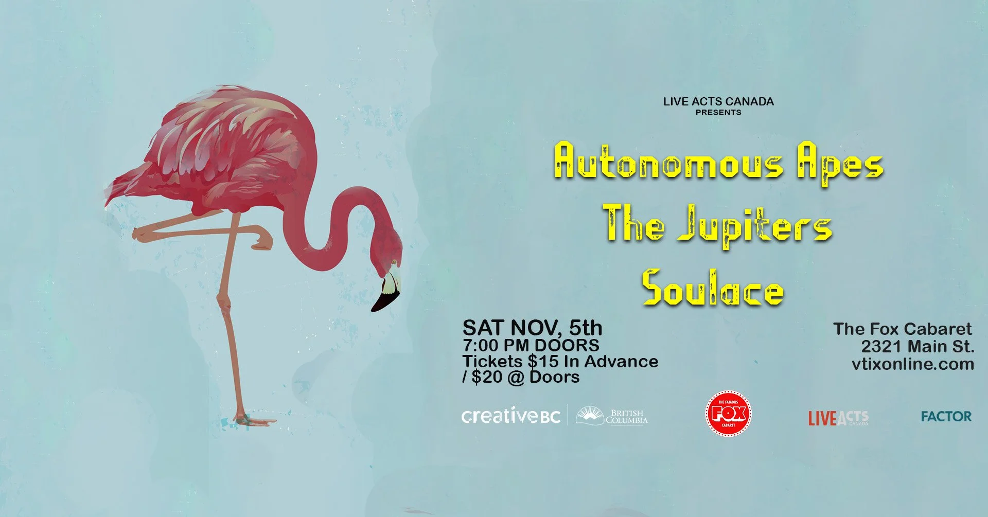 Live Acts Canada presents Autonomous Apes with special guests The Jupiters and Soulace.