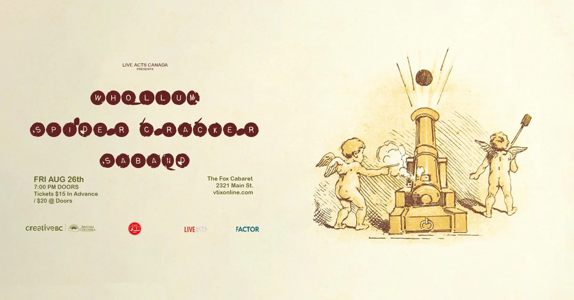 Live Acts Canada presents Whollum with special guests Spider Cracker and SaBand.