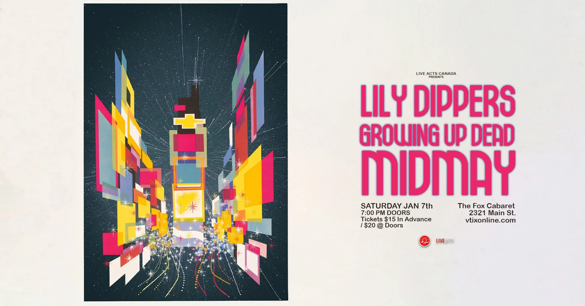 Live Acts Canada presents Lily Dippers with special guests Growing Up Dead and Midmay.