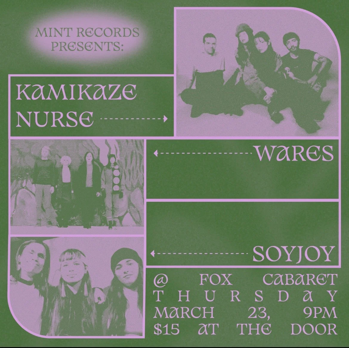 Mint Records Presents: Kamikaze Nurse, Wares (AB), and SoyJoy at The Fox Cabaret on March 23, 9pm, $15 Tix!