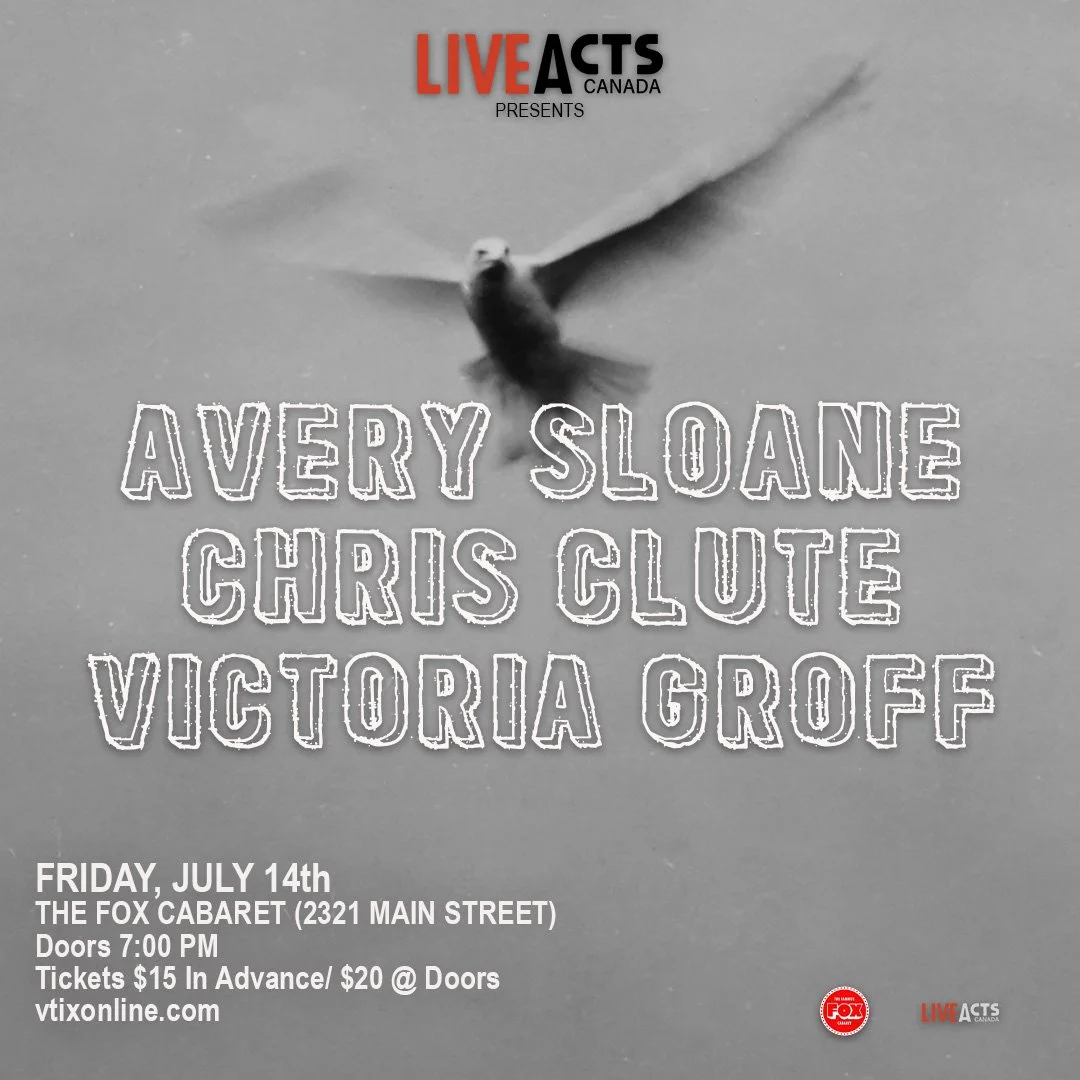 Live Acts Canada presents Avery Sloane with special guests Chris Clute and Victoria Groff.