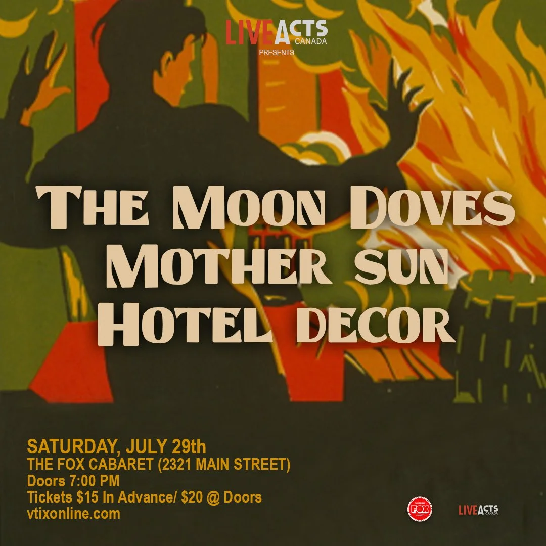 Live Acts Canada presents The Moon Doves with special guests Mother Sun and Hotel Decor.
