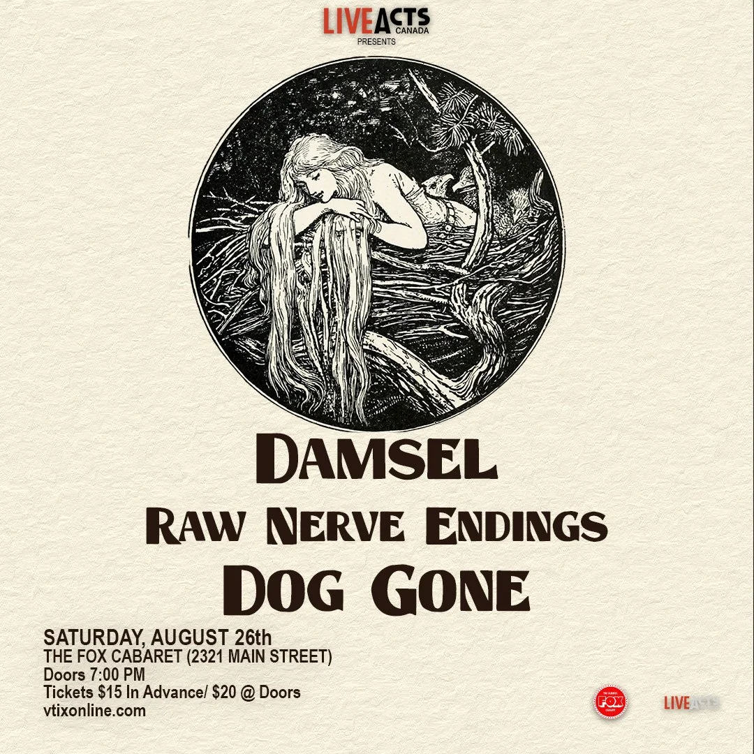 Live Acts Canada presents Damsel with special guests Raw Nerve Endings and Dog Gone.