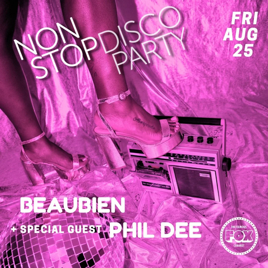 Join us for an evening of vintage dance music as we put four to the floor in tribute to disco glamour from the 70s-00s with DJs Beaubien + special guest Phil Dee.