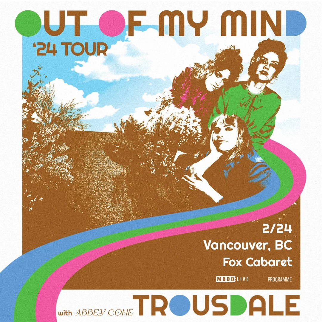 Trousdale Saturday, February 24, 2024 7:00 PM 10:00 PM 19:00 22:00 Google Calendar ICS MODO LIVE and Programme present Trousdale with Abbey Cone.Doors 7:00pmTickets: see below19+/No Minors BUY TICKETS