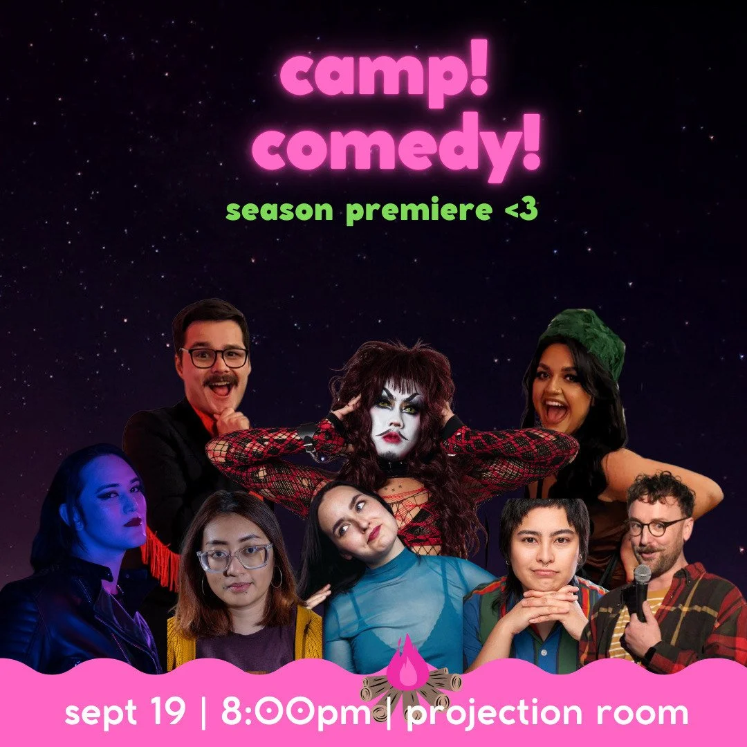 camp! comedy! is a comedy and drag show hosted by Sasha Mark and Savannah Erasmus up in The Projection Room. The last 10 shows have sold out, for a reason!