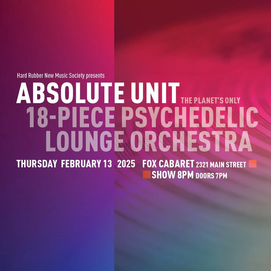 Hard Rubber New Music Society presents Absolute Unit: 18-piece psychedelic lounge orchestra.