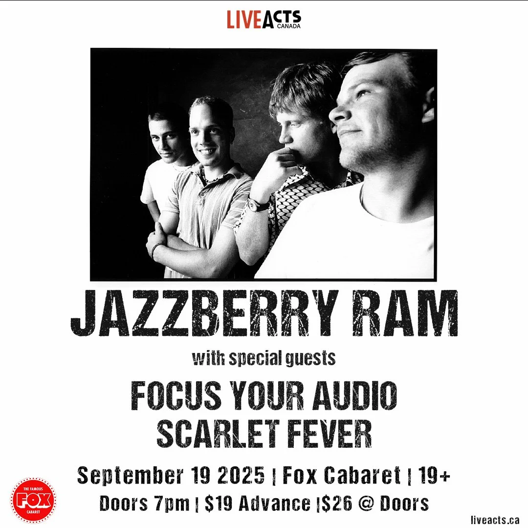 Live Acts Canada presents Jazzberry Ram with Focus Your Audio and Scarlet Fever.