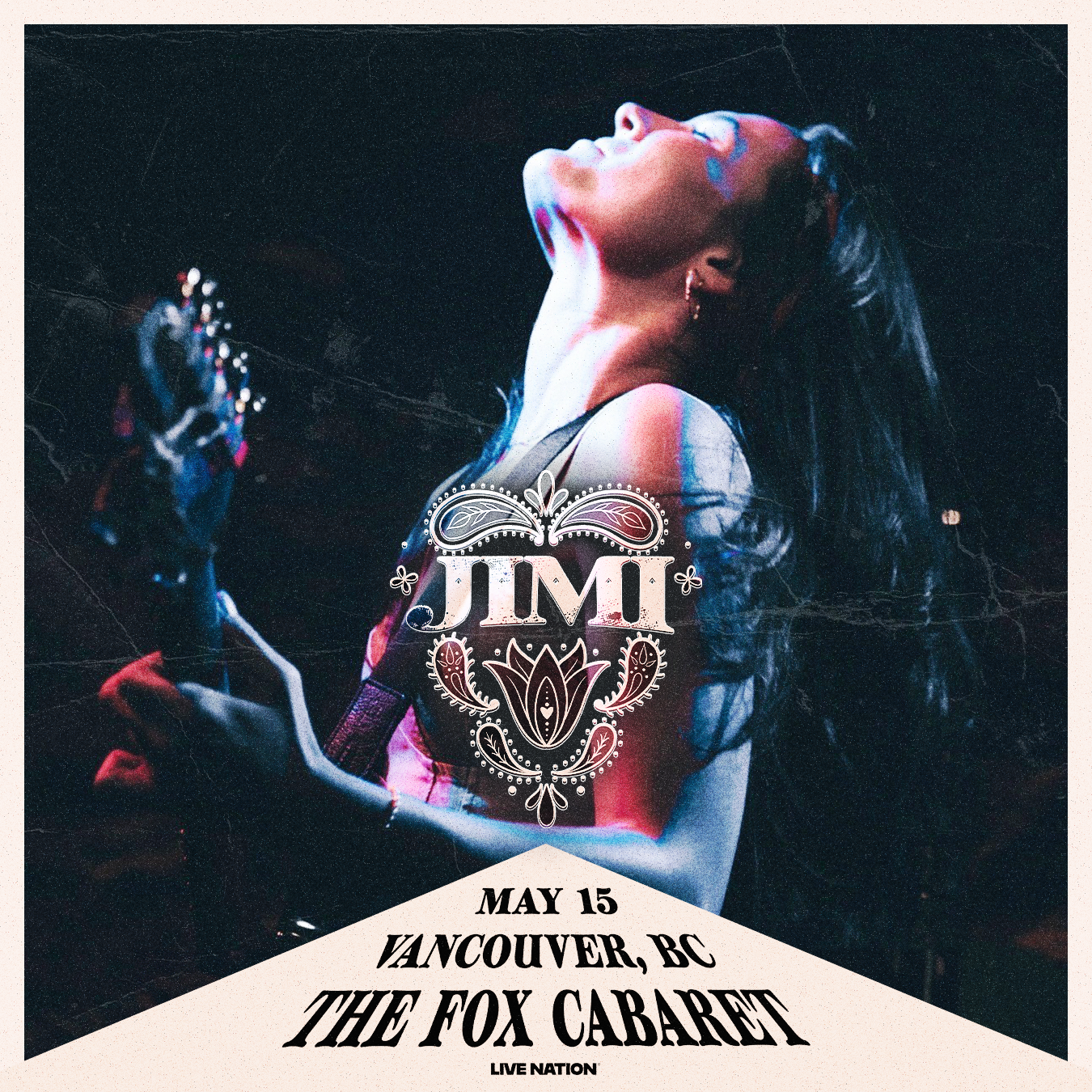 JIMI Friday, May 15, 2026 7:00 PM 10:00 PM 19:00 22:00 Google Calendar ICS Live Nation presents JIMI with guests.Doors 7:00pmTickets: see below19+/No Minors BUY TICKETS